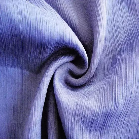 順紆縐:化纖仿真絲面料,織物結(jié)構(gòu)采用平紋變化,尤其是有梭織造適應(yīng)絲的高捻度,在前道經(jīng)緯強(qiáng)捻的條件下,染整收縮后經(jīng)緯絲扭曲,布面縐感明顯,成品富有自然伸縮,交織點(diǎn)有牢固、不易松動(dòng)、扒裂的特點(diǎn),布面留有透孔點(diǎn),如紗麻風(fēng)格,產(chǎn)品除了具有柔軟、滑爽、透氣、易洗的優(yōu)點(diǎn)外,舒適性更強(qiáng),懸垂性更好。