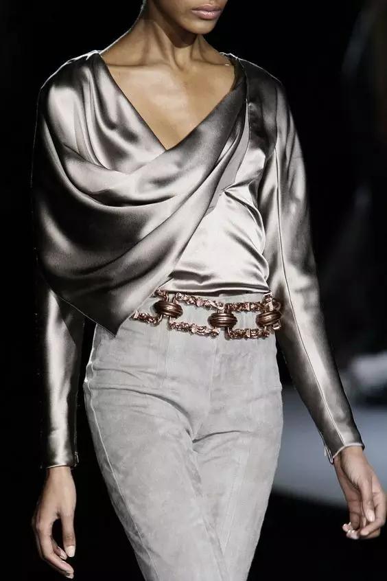 這種面料拿在手上就感覺很好,所以賣緞子的衣服,買家滿意度通常都是很高的;這種面料容易皺,所以熨一下后,平順了,才能完美的閃現(xiàn)它的光澤;緞面是很顯高貴的面料,其實(shí)有些設(shè)計(jì)用這種面料做真的非常美,高貴而極具大牌感。素縐緞適合做連衣裙,圍巾,襯衫等。