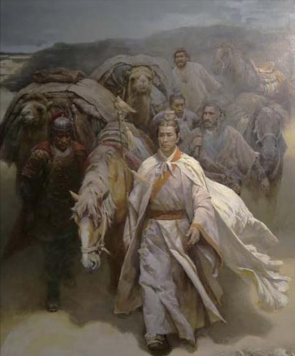公元前138年,張騫第一次到西域,率領100多人,歷盡艱險,回到長安時僅剩兩人,費時13年。