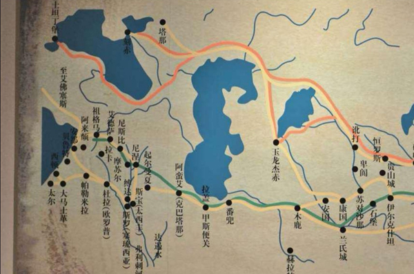在這條主絲路的路經(jīng)之處,疏勒就是后來的喀什,大宛就是后來的烏茲別克境內(nèi)費爾干納盆地,康居位于后來的撒馬爾罕附近,莎車即后來的莎車縣,大月氏即后來的阿富汗和伊朗,條支即后來的伊拉克、敘利亞一帶,大秦即古羅馬帝國。