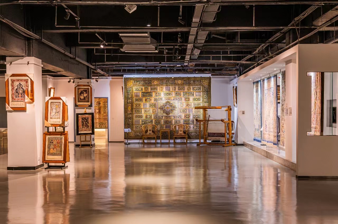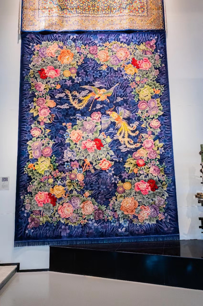 手工打結(jié)絲毯充分利用蠶絲特性,具有紋路細(xì)密緊實(shí),毯質(zhì)柔軟而有彈性,顏色鮮亮,圖案細(xì)膩,防水、防皺、不褪色、不變形等特點(diǎn)。特別是利用蠶絲線的光澤和織造的統(tǒng)一方向性。因此,當(dāng)你在一張絲毯前走動(dòng)時(shí),絲毯的每個(gè)地方由于光線角度不同,會(huì)均勻的發(fā)生“由暗及亮”或“由亮及暗”的變化,像在親臨一場(chǎng)近景魔術(shù),光彩四溢、十分夢(mèng)幻。閬中古城人用手的溫度呵護(hù)著傳統(tǒng)工藝的生命力,讓保存在方寸之間的魔法美學(xué),在時(shí)空交換中得以世代承襲,孕育出讓世界為之矚目的東方傳奇。