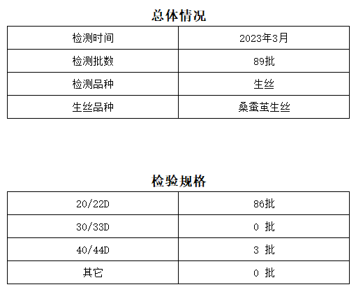 2023年3月中國(guó)繭絲綢交易市場(chǎng)湖州生絲超市公檢生絲質(zhì)量分析報(bào)告
