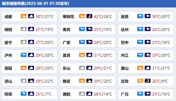 四川天氣:未來三天(6月1日至3日),四川盆地大部陰雨持續(xù),普遍將出現(xiàn)中雨,局地或有暴雨。受降水影響,今天四川高溫天氣將有所緩解,但在南部仍將出現(xiàn)高溫,公眾需做好防暑降溫工作。