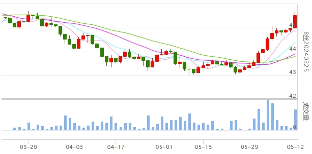 今日(2023年06月12日,周一)中國繭絲綢交易市場(chǎng)生絲指數(shù)上漲0.50%收于4443.19點(diǎn)。B絲(商檢4A級(jí)生絲):230625合約上漲0.21萬元報(bào)收于44.13萬元;230925合約上漲0.30萬元報(bào)收于44.46萬元;240325合約上漲0.54萬元報(bào)收于45.54萬元。