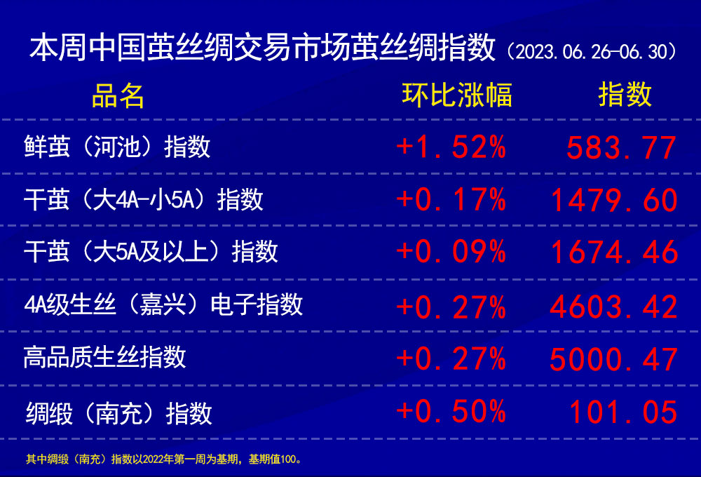 生絲電子指數(shù)上半年上漲6.67% 繭絲綢各指數(shù)表現(xiàn)不一(20230630)
