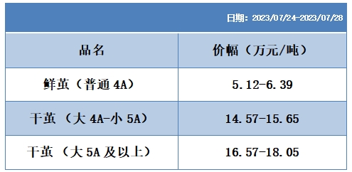 根據(jù)本周蠶繭報(bào)價(jià)按照指數(shù)方案形成的基準(zhǔn)品價(jià)格區(qū)間