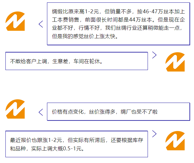 杭嘉湖片區(qū)和蘇北等織造主產(chǎn)區(qū)的企業(yè)中上調(diào)價(jià)格范圍有增加,但整體銷量不多。