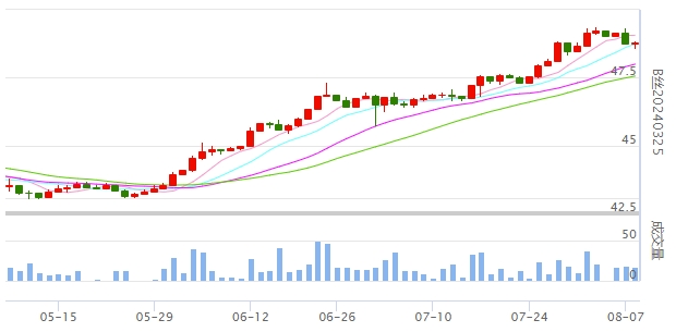 今日(2023年08月08日,周二)中國(guó)繭絲綢交易市場(chǎng)生絲指數(shù)微漲0.05%收于4816.98點(diǎn)。B絲(商檢4A級(jí)生絲):230825合約報(bào)平收于48.03萬(wàn)元;230925合約上漲0.15萬(wàn)元報(bào)收于48.03萬(wàn)元;240325合約上漲0.06萬(wàn)元報(bào)收于48.81萬(wàn)元。