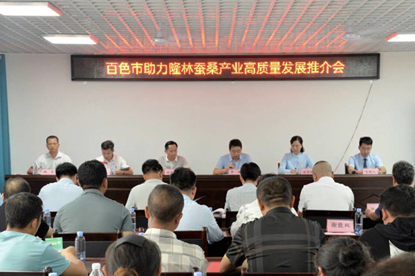 為進(jìn)一步加強(qiáng)黨建引領(lǐng)作用,打造“產(chǎn)業(yè)+金融+保險(xiǎn)+宣傳”四位一體長(zhǎng)效幫扶模式,推動(dòng)蠶桑產(chǎn)業(yè)高質(zhì)量發(fā)展,2023年8月10日,百色市農(nóng)業(yè)農(nóng)村局、百色市廣播電視臺(tái)、桂林銀行百色分行、中國(guó)人保財(cái)險(xiǎn)百色市分公司聯(lián)合開(kāi)展“‘四融’促‘三農(nóng)’助力鄉(xiāng)村振興”黨建共建簽約儀式暨助力蠶桑產(chǎn)業(yè)高質(zhì)量發(fā)展推介活動(dòng),活動(dòng)在隆林縣舉行。百色市市農(nóng)業(yè)農(nóng)村局,百色市廣播電視臺(tái),隆林各族自治縣人民政府,桂林銀行百色分行,中國(guó)人保財(cái)險(xiǎn)百色市分公司,隆林盛業(yè)生態(tài)農(nóng)業(yè)科技發(fā)展有限公司,桂林銀行隆林分行相關(guān)負(fù)責(zé)人及隆林各族自治縣種桑養(yǎng)蠶農(nóng)戶代表等40余人參加本次活動(dòng)。