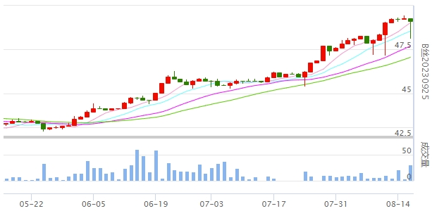 今日(2023年08月16日,周三)中國繭絲綢交易市場生絲指數(shù)下跌0.22%收于4904.23點(diǎn)。B絲(商檢4A級(jí)生絲):230825合約下跌0.09萬元報(bào)收于48.96萬元;230925合約下跌0.18萬元報(bào)收于49.11萬元;240325合約下跌0.27萬元報(bào)收于49.38萬元。
