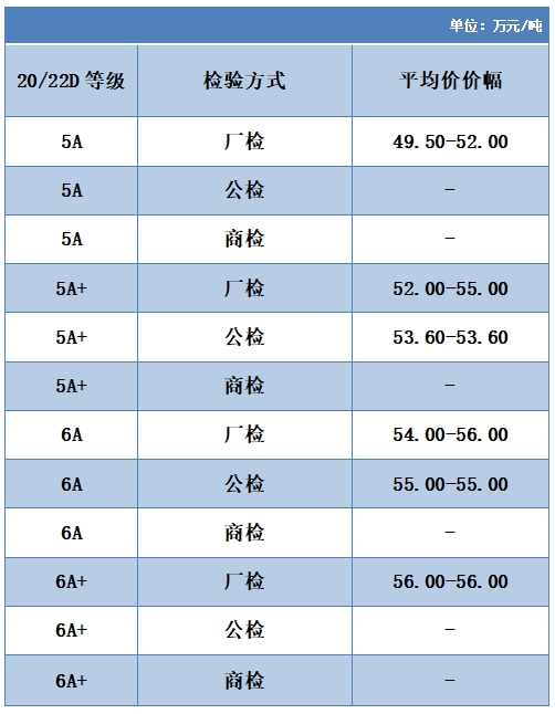 本周高品位生絲協(xié)作單位成交價格區(qū)間