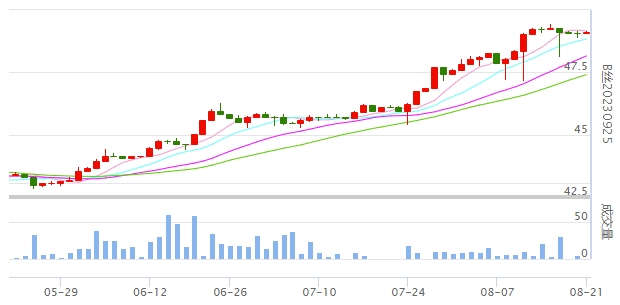 今日(2023年08月21日,周一)中國(guó)繭絲綢交易市場(chǎng)生絲指數(shù)微漲0.01%收于4892.69點(diǎn)。B絲(商檢4A級(jí)生絲):230825合約報(bào)平收于48.87萬(wàn)元;230925合約上漲0.03萬(wàn)元報(bào)收于49.11萬(wàn)元;240325合約報(bào)平收于49.32萬(wàn)元。