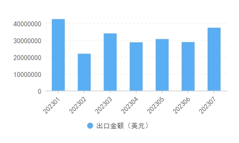 這是海關(guān)編碼為5007的絲或絹絲機織物商品出口金額統(tǒng)計。