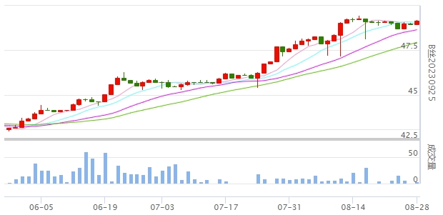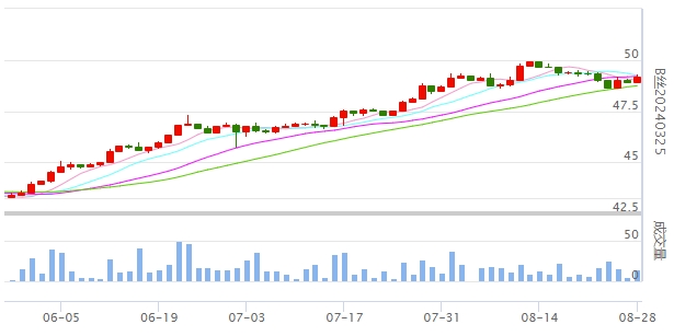 今日(2023年08月28日,周一)中國(guó)繭絲綢交易市場(chǎng)生絲指數(shù)上漲0.36%收于4896.30點(diǎn)。B絲(商檢4A級(jí)生絲):230925合約上漲0.18萬元報(bào)收于49.14萬元;240325合約上漲0.27萬元報(bào)收于49.20萬元;240925合約上漲0.12萬元報(bào)收于48.39萬元。
